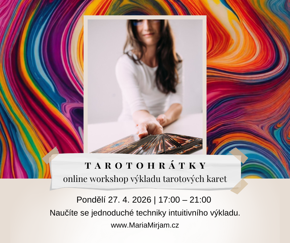 Jmenuji se Mária Mirjam Zinburgová a Tarot mě provází životem přes 25 let. Vidím v něm nástroj, který nám umožňuje dotknout se duše - ta k nám promlouvá ve chvílích, kdy mysl ustoupí a ke slovu se dostává intuice a cit. Skrze tuto zkušenost dokážeme vnímat sebe sama a nacházet řešení zátěžových situací a problémů.